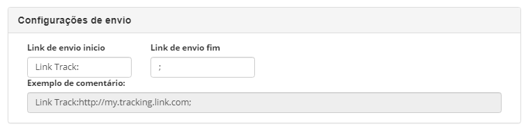 4. Em Configurações de envio, complete os campos Link envio inicio e Link envio fim: