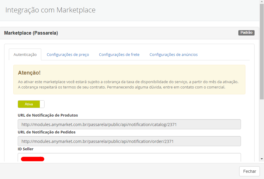 7. Copie a URL do campo URL de Notificação de Produtos e insira no Marketplace no campo Catalog EndPoint;
